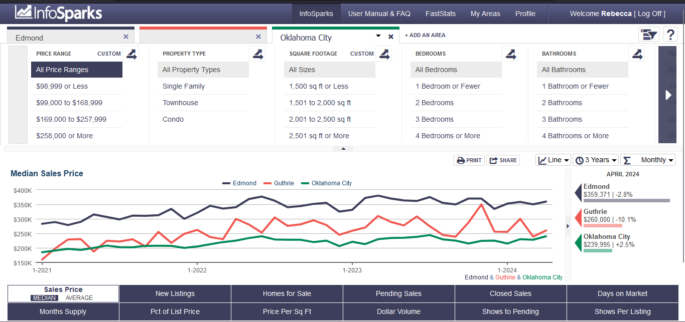 As you can see from the above data- each housing market is different than the other. Oklahoma City is difficult to even tell where it begins and ends as it makes its way past Edmond up to Deer Creek, yet the housing market is way below Edmond’s market. Guthrie is just a small town north of Edmond and while the housing market has been dropping in 2024, it has still increased from 2021. Housing prices fluctuate between markets and between months. Something else this data doesn’t tell you is that Guthrie has recently experienced a housing boom as developers buy up land and build new developments which floods the market with too many homes at once and decreases their overall value, but as those houses get sold and no more are built the housing market will stabilize again and stay more consistent. This stuff and a lot more are what your Realtor is spending their time doing at home and in the office- they want to make sure they price your house accurately. They don’t get paid unless your house sells. So believe me when I say you should listen to your Realtor when they price your house.